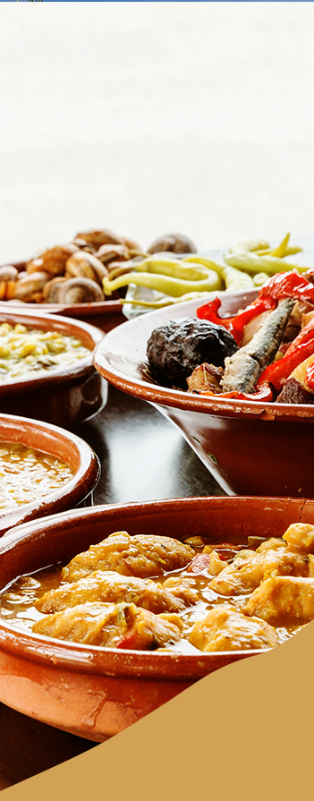 Se cuecen las habichuelas y los garbanzos y cuando esten cocidos se añaden las patatas. Se echa un sofrito con cebolla, tomate, ajo y pimentón. Se parte a trocitos pequeños la carne, tocino y longaniza. Freímos los pimientos, los sacamos y los picamos. En ese aceite se da un par de vueltas a los trozos de carne, longaniza y tocino.