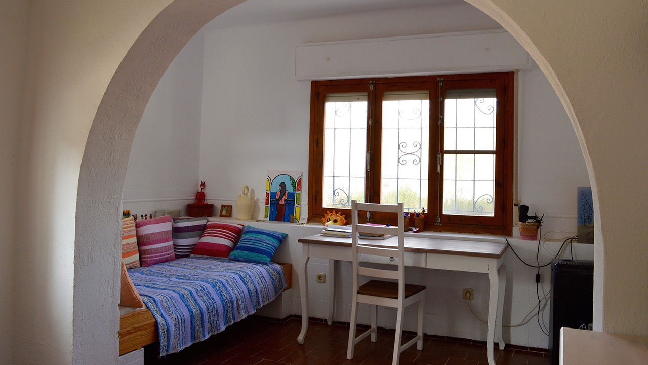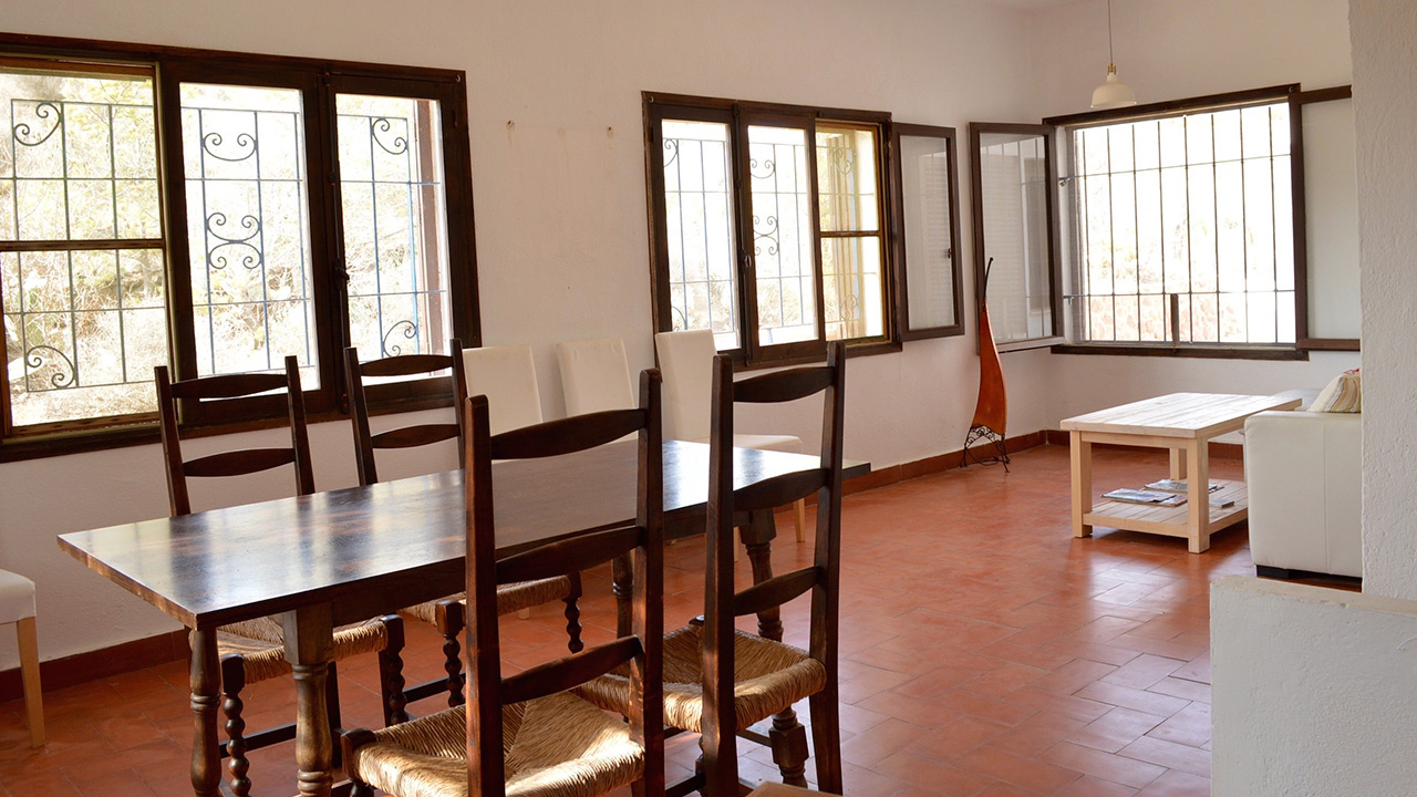 Entorno: Cortijo de 200m en el corazón del Parque Natural Cabo de Gata-Níjar, entre San José y Los Escullos y frente a los dos picos de "El Fraile", el volcán más alto del Cabo de Gata. Desde la casa puede verse el mar en Los Escullos (apróx.a 3 km) y cuenta con 6.300m de terreno protegido lleno de pitas, chumbares, palmitos y diferentes especies de árboles. La arquitectura con arcos, diferentes alturas y techos altos es la típica de la zona, aunque el estilo de suelos y azulejos es la propia del año de construcción.