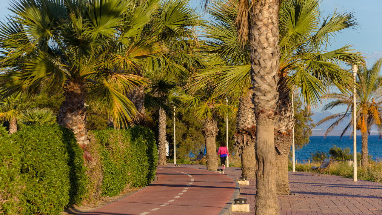 Con la playa a un lado y edificios altos al otro en la zona de San Miguel y el Zapillo y casas en la zona de Nueva Almería.